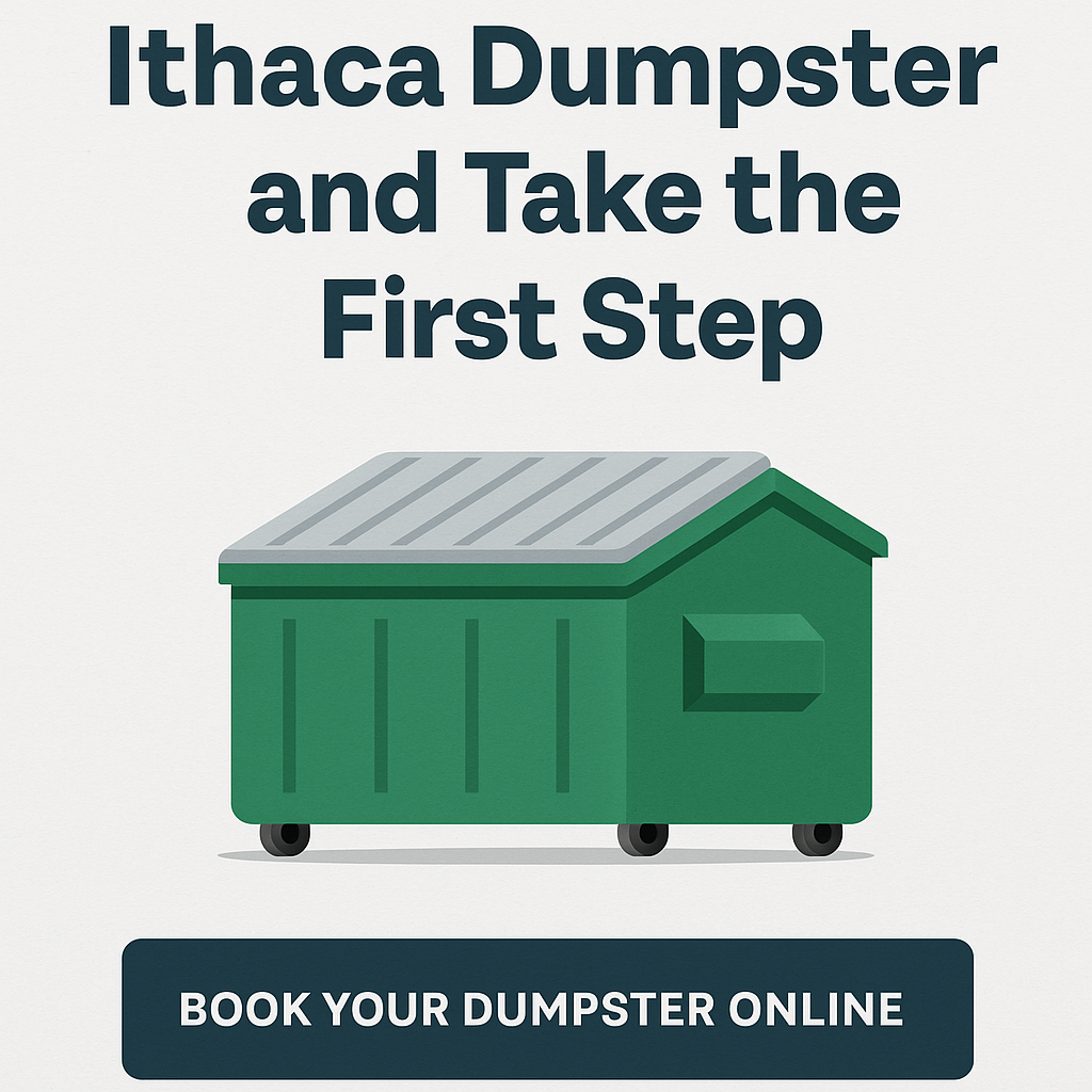 Dumpster pricing in Ithaca depends on container size, delivery distance, included weight, and rental period. A clear flat-rate quote should include size, number of rental days, weight included, any extra-ton costs, contamination fees, and extension charges. To stay under weight limits, box books tightly, flatten furniture when possible, and avoid loading dense renovation debris into the same container as household junk.